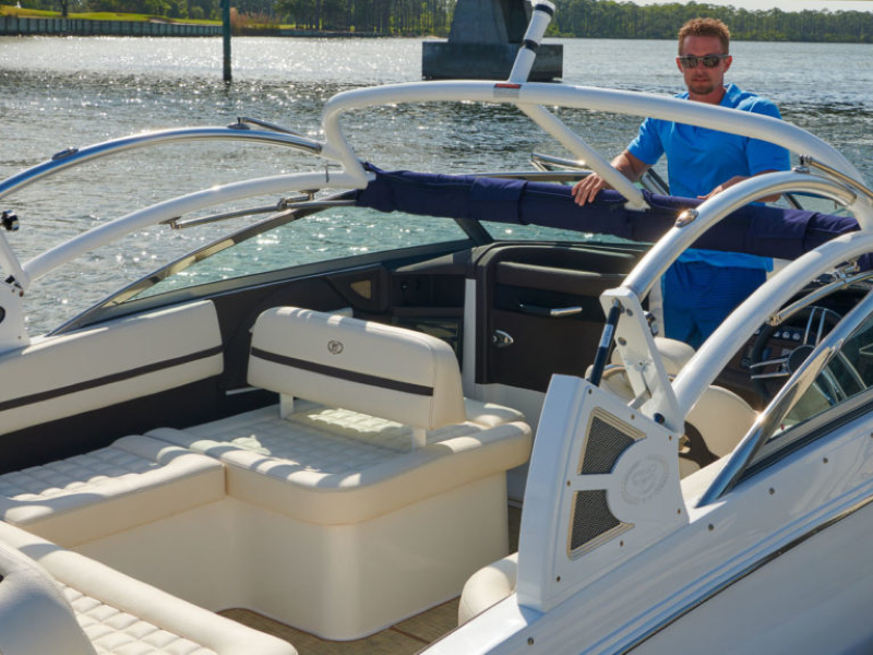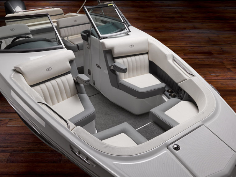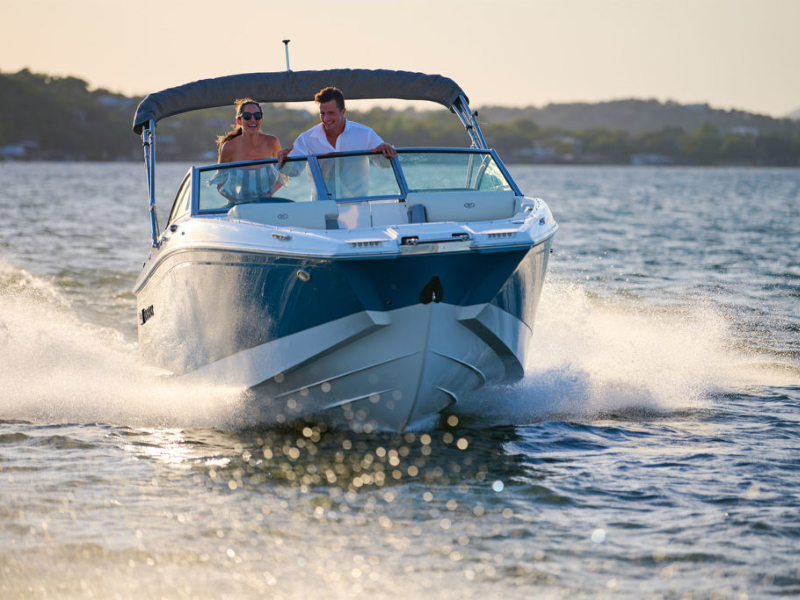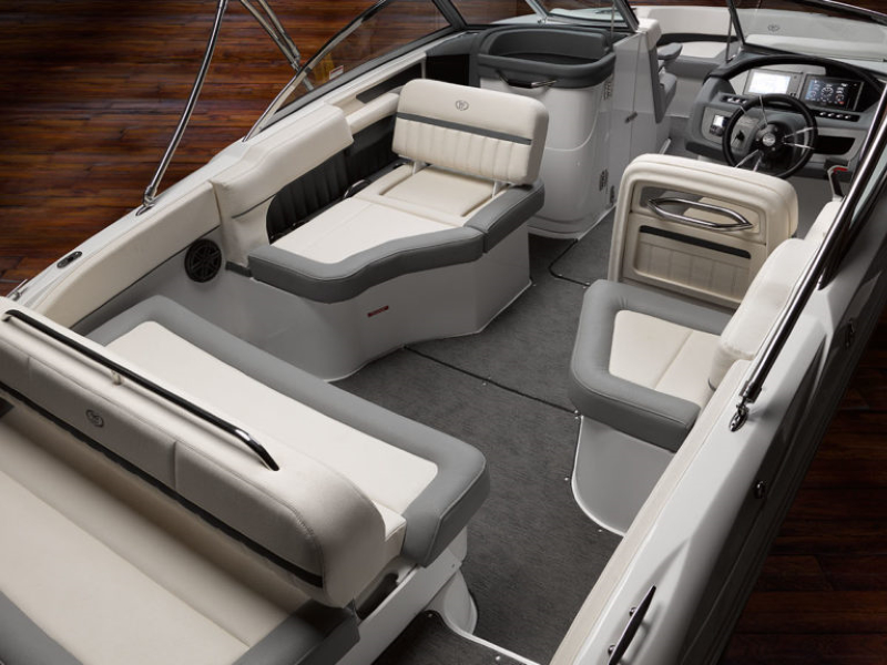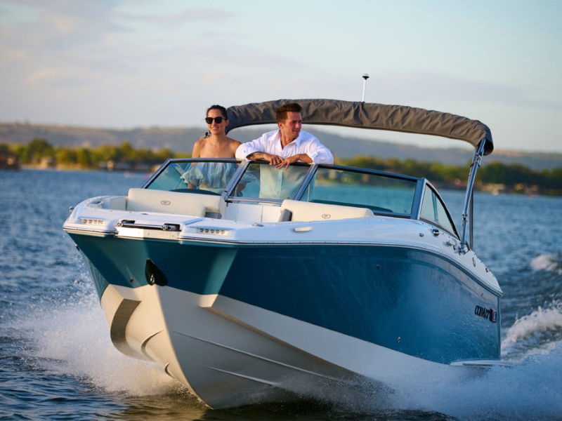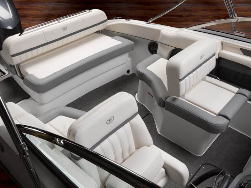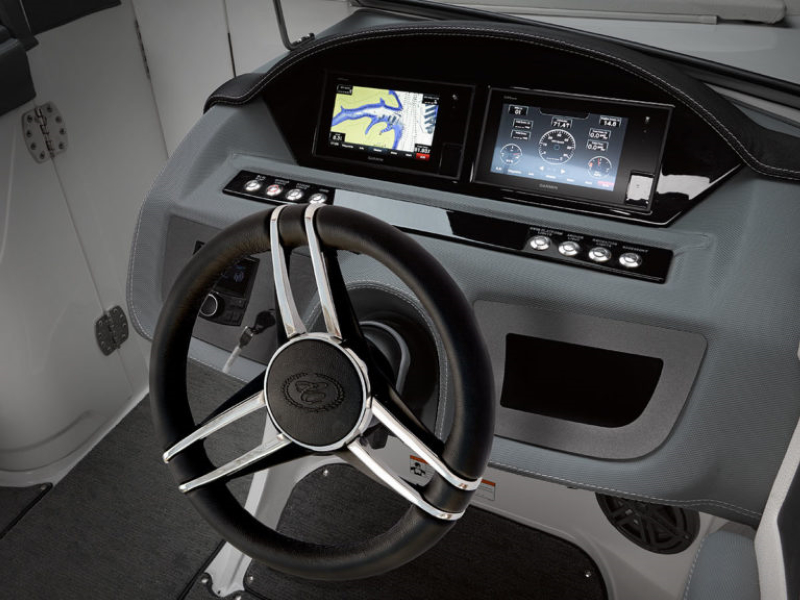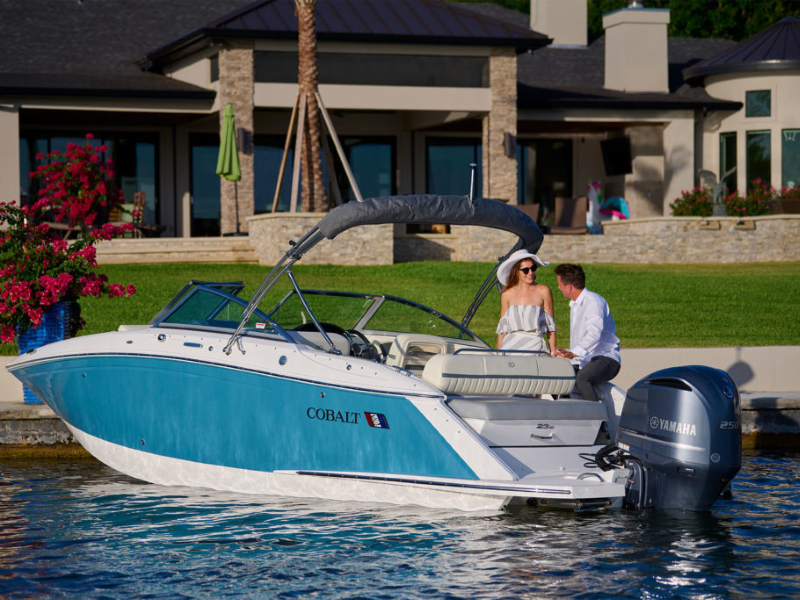 The Cobalt 23SC is contoured for accessibility, but still features all the expected Cobalt standards: quickness to plane, smooth ride, stability in turns. Plus, the power of an outboard means solid speed and performance. On the inside, there’s a multi-use sun pad and adjustable backrest, plush seating arrangements, well-placed storage compartments and impeccable amenities. The all-composite transom, all-fiberglass stringer system, cockpit liner deck, Kevlar® reinforced hull and stainless steel windshield braces combine to make the 23SC a strong boating choice, and an experience you just can’t live without.