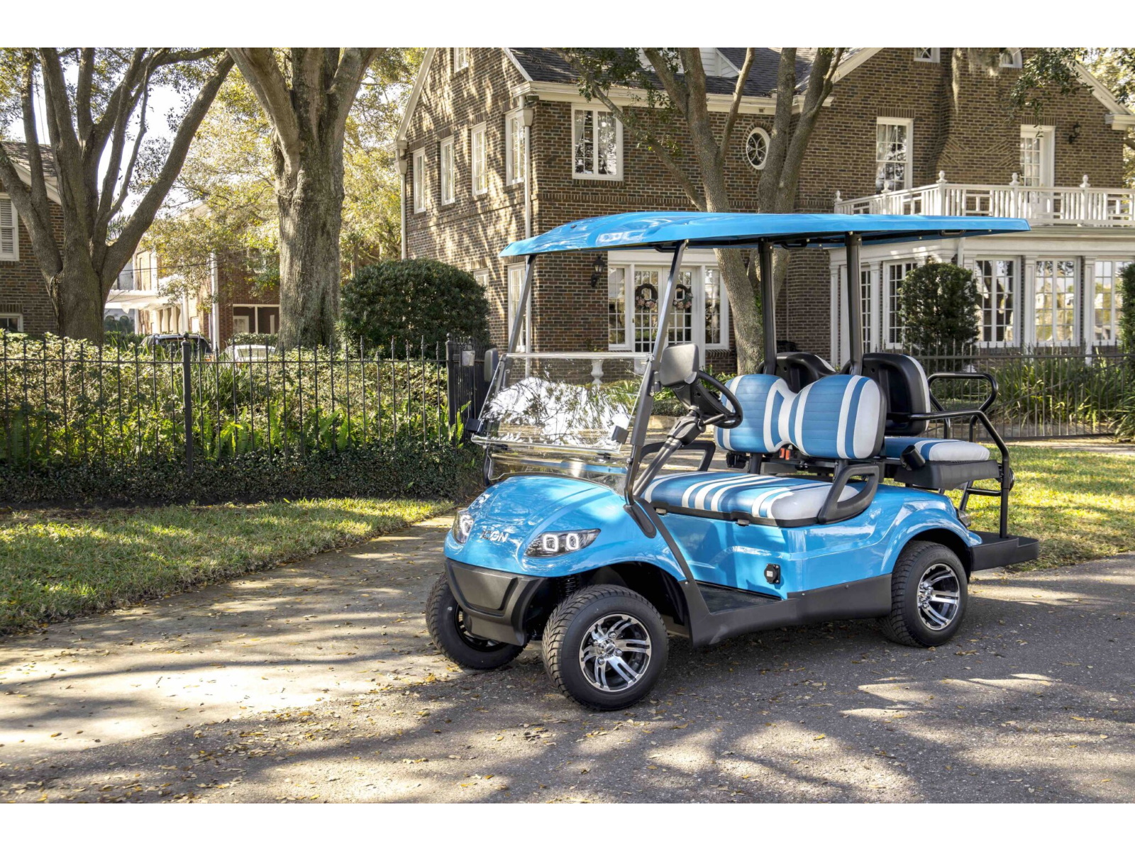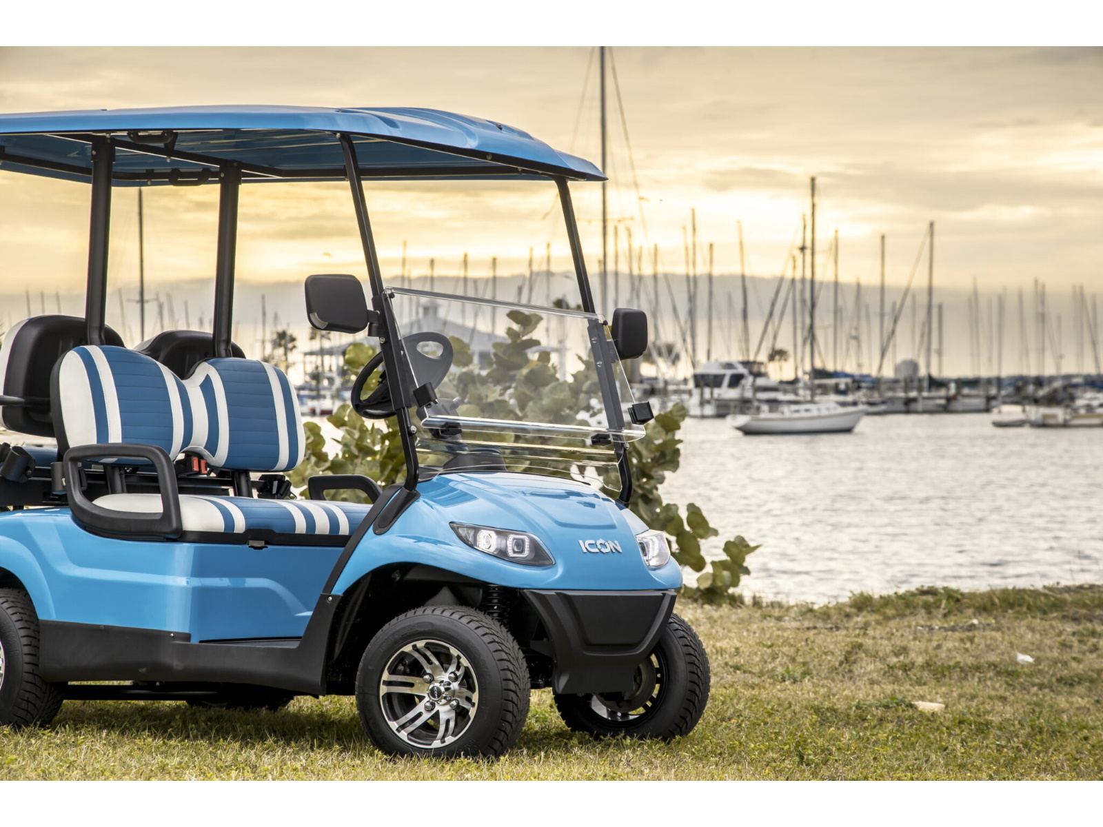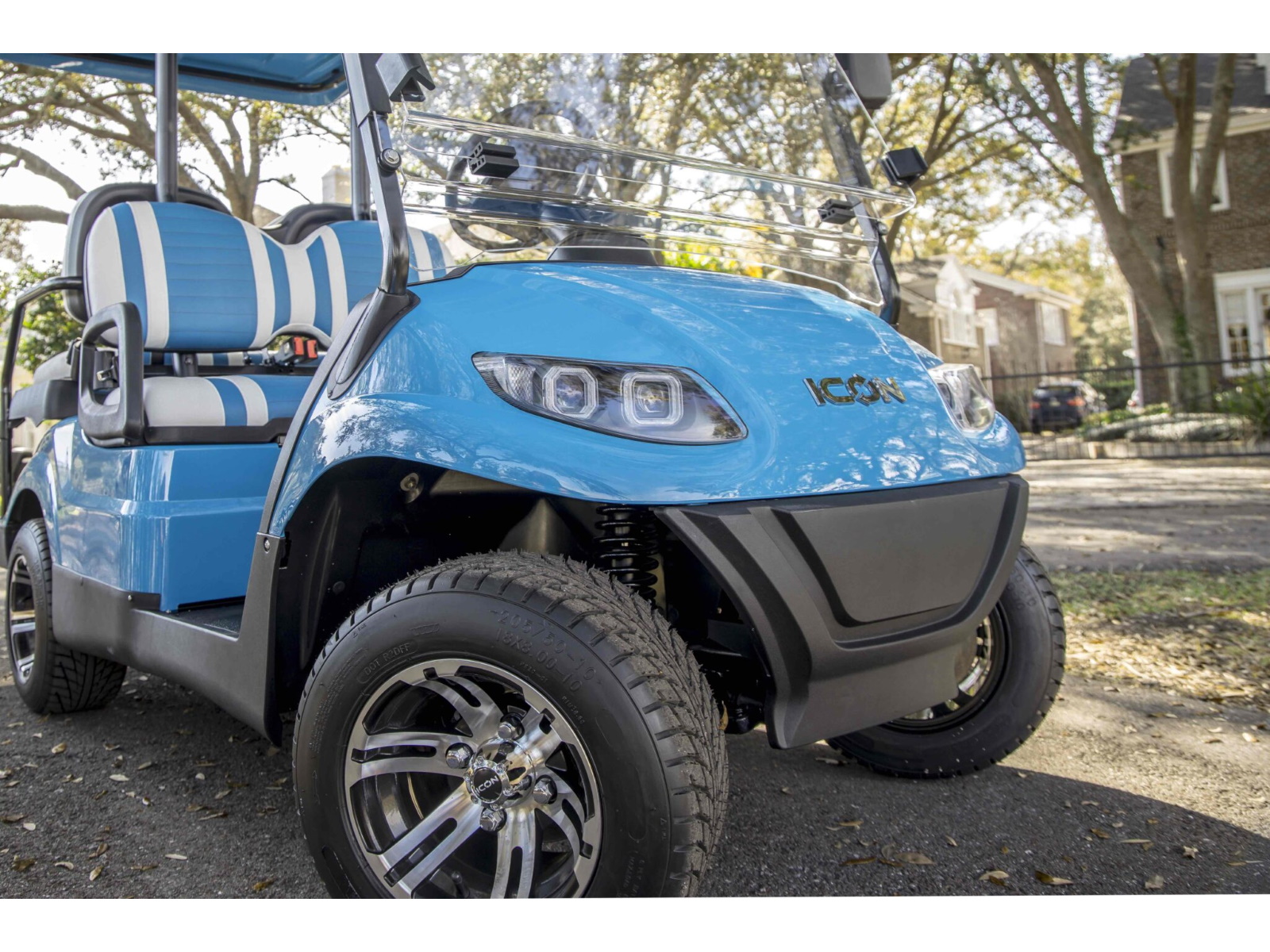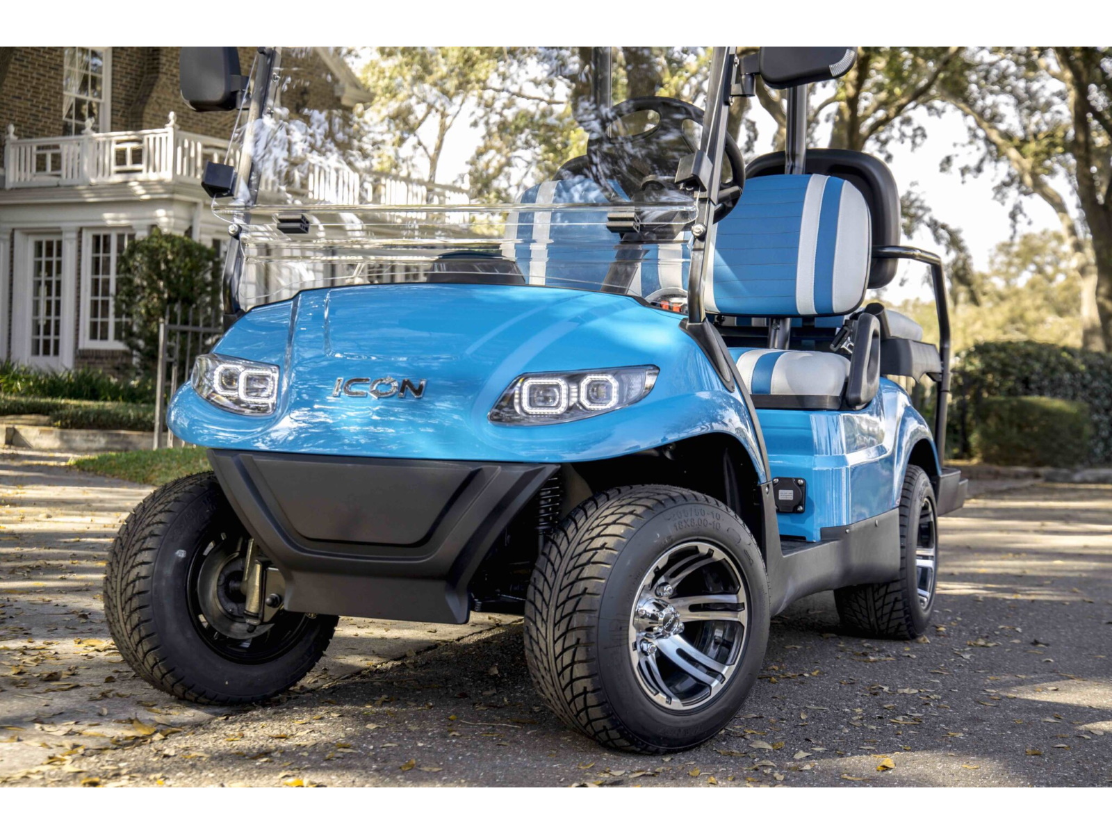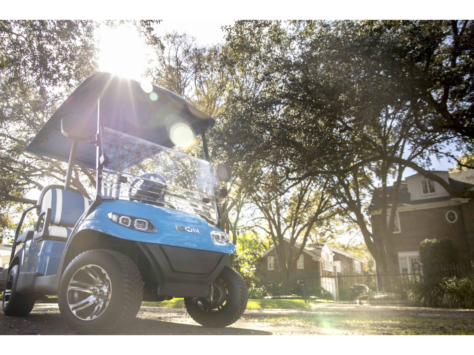 The ICON® i40 four-seater golf cart is the epitome of perfection when it comes to residential and commercial needs. Whether you’re taking your friends to lunch or transporting potential clients’, the ICON® i40 is stylish and extremely comfortable. Plus, it’s loaded with premium features like 12′′ aluminum wheels, 4-wheel disc brakes, powder-coated steel chassis, lights, turn signals, high-speed rear ends, durable front and rear bumpers, painted rooftops, horns, digital gauges, and more!