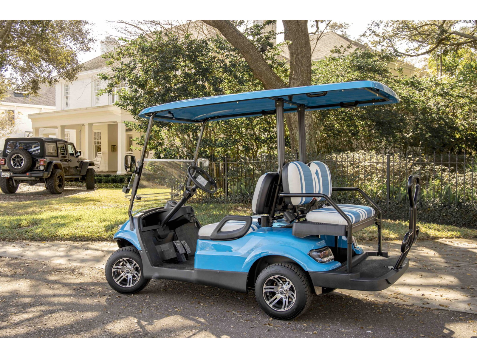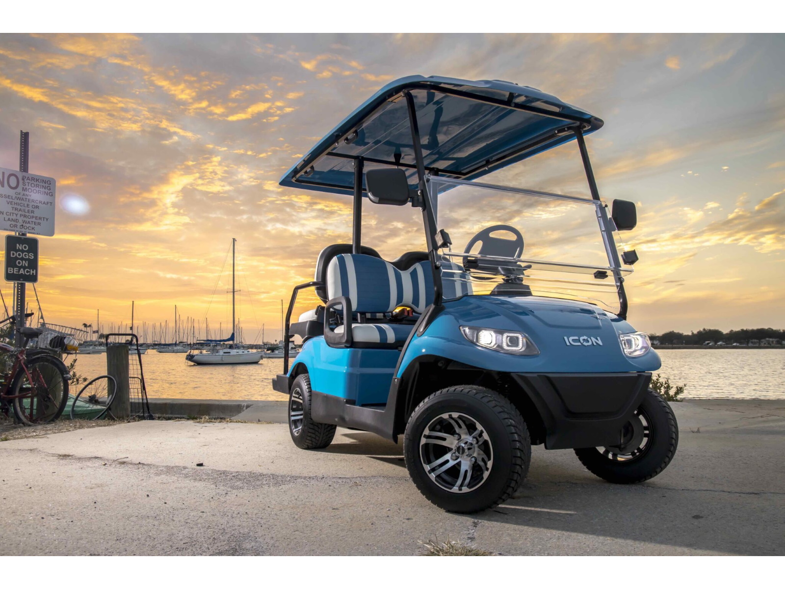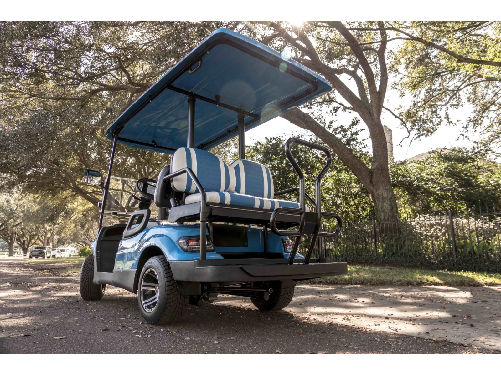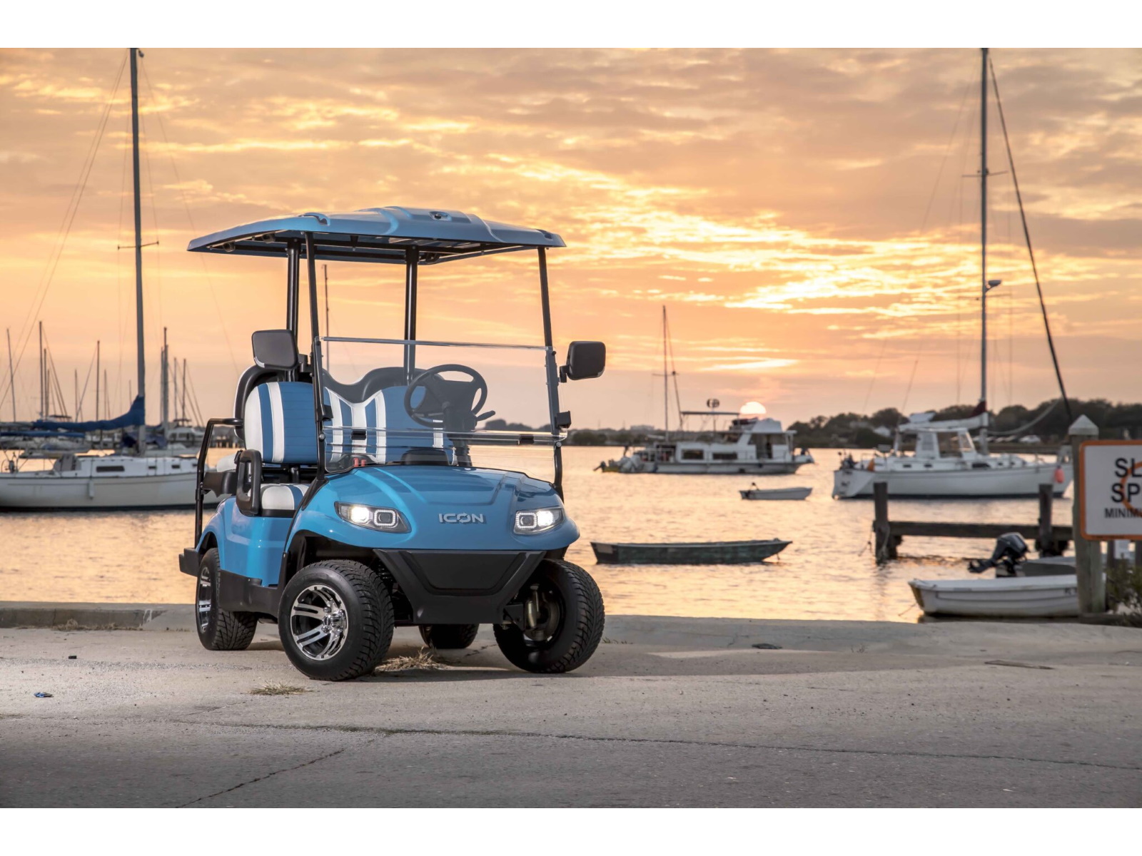The ICON® i40 four-seater golf cart is the epitome of perfection when it comes to residential and commercial needs. Whether you’re taking your friends to lunch or transporting potential clients’, the ICON® i40 is stylish and extremely comfortable. Plus, it’s loaded with premium features like 12′′ aluminum wheels, 4-wheel disc brakes, powder-coated steel chassis, lights, turn signals, high-speed rear ends, durable front and rear bumpers, painted rooftops, horns, digital gauges, and more!